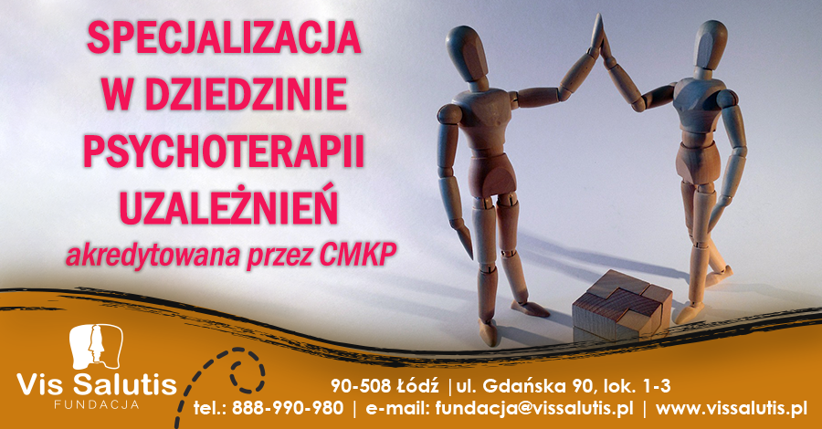 Szanowni Państwo, informujemy, że Fundacja Vis Salutis w dniu 02.01.2025 r. otrzymała kolejną 3 akredytację na prowadzenie specjalizacji w dziedzinie psychoterapii uzależnień. Tym samy Fundacja jest największym ośrodkiem w Polsce, który kształci przyszłych terapeutów – specjalistów w dziedzinie psychoterapii uzależnień. https://kursy.cmkp.edu.pl/Akredytacja/Specjalizacyjne